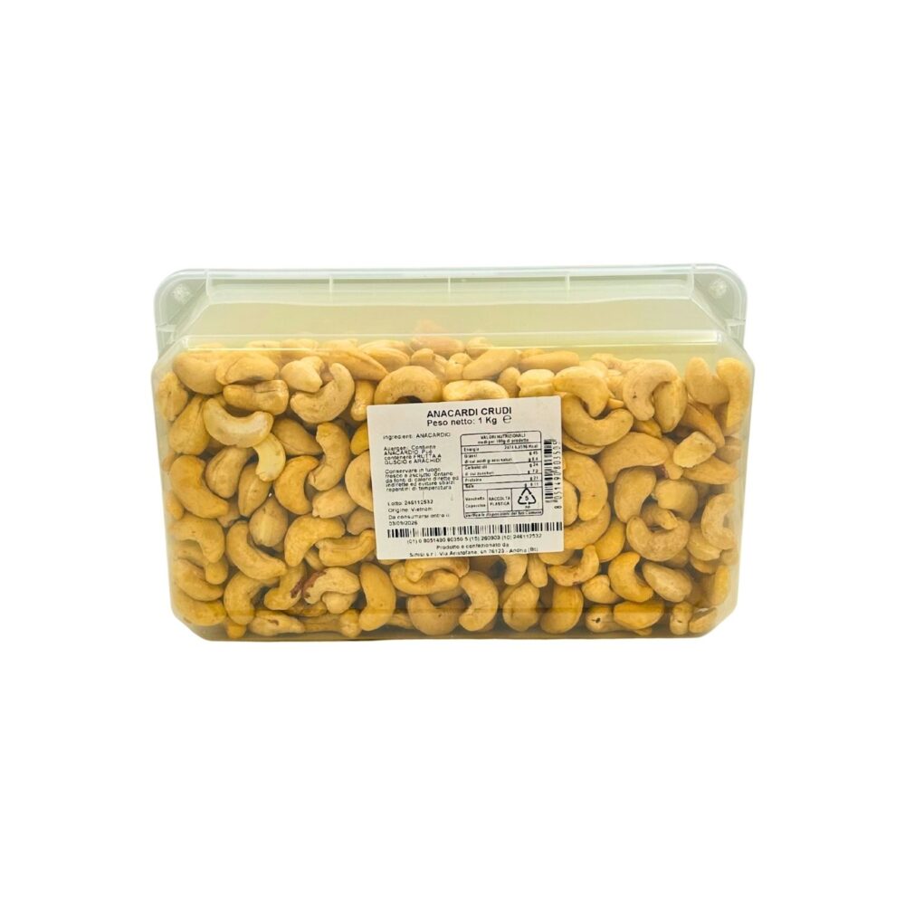 ANACARDI: sono il “vero frutto” di un albero che in realtà fornisce due tipi di frutti; uno carnoso (la mela di anacardio), consumato generalmente nei paesi di produzione e impiegato nella produzione di succhi, e uno “secco” (la mandorla di anacardio) che è quella che dà origine ad una nuova pianta e che troviamo normalmente in commercio. Gli anacardi sono ricchi di magnesio e potassio che contribuiscono alla normale funzione muscolare e rappresentano una buona fonte vegetale di proteine che contribuiscono alla crescita e al mantenimento della massa muscolare.