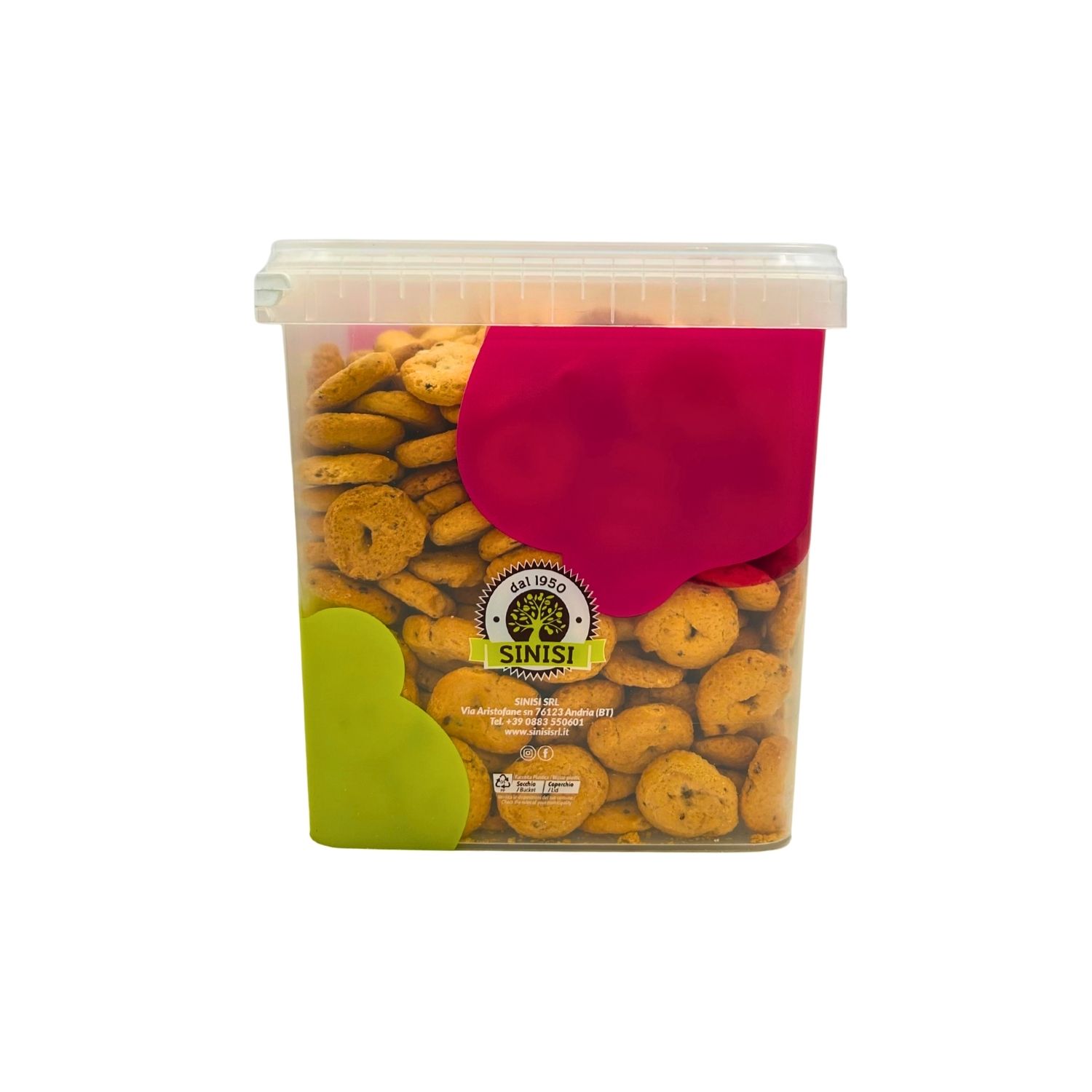 INGREDIENTI: Farina di grano tenero tipo “00”, vino bianco (contiene solfiti), olio di semi di girasole alto oleico, sale, olio extra vergine di oliva 2%, pomodoro in granuli 1,4%, origano 0,3%, cipolla in granuli 0,3%, basilico 0,3%, semi di sesamo 0,3%.